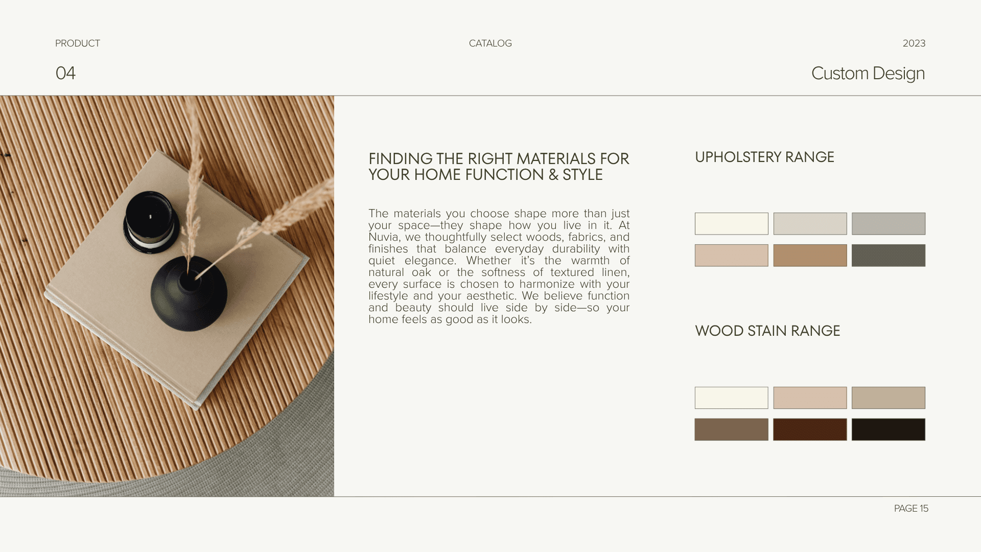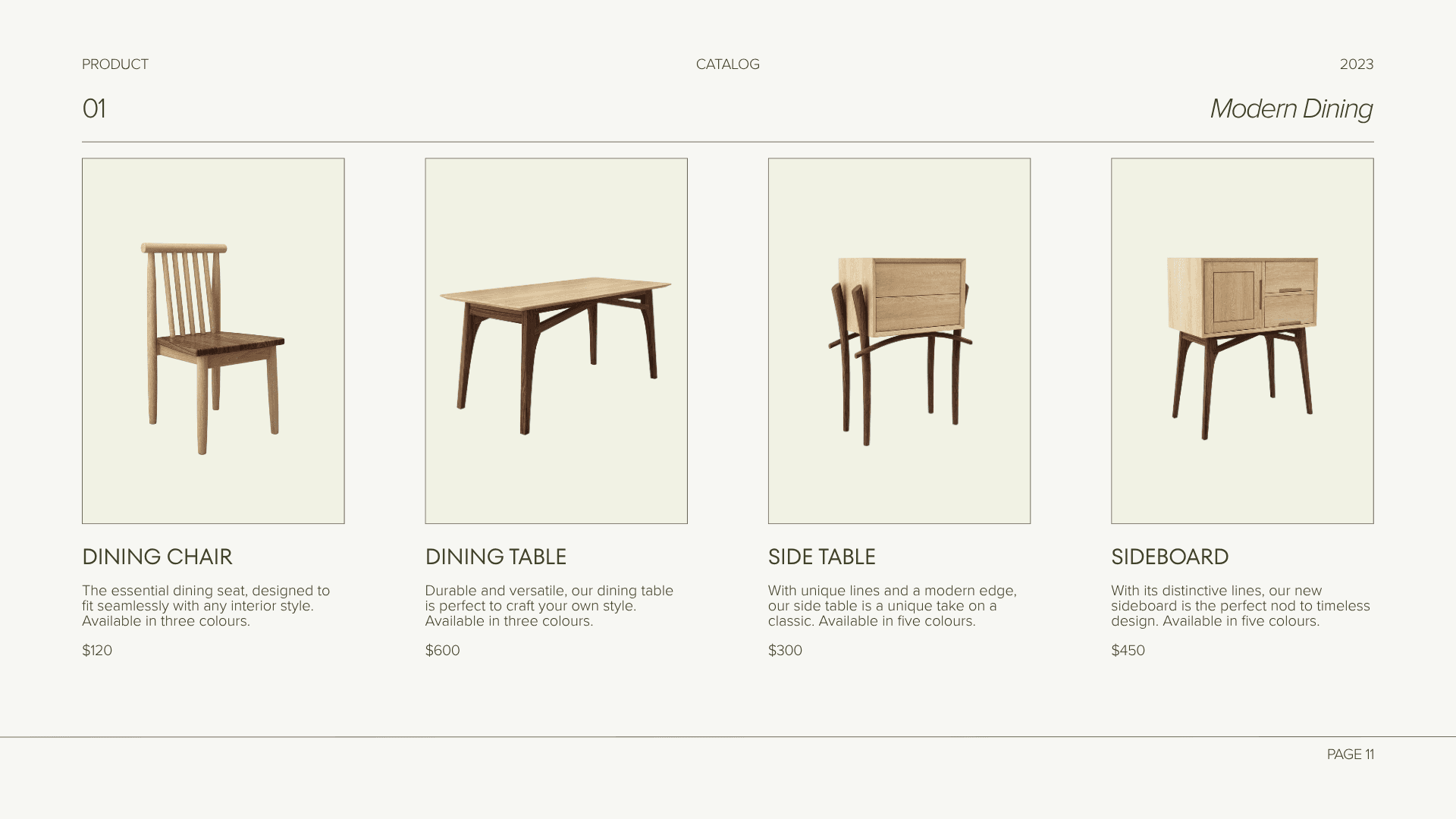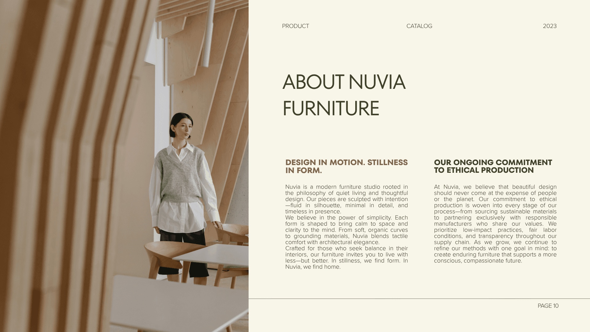 Branding and catalogue design for a furniture brand, capturing minimalism and elegance of form and design.